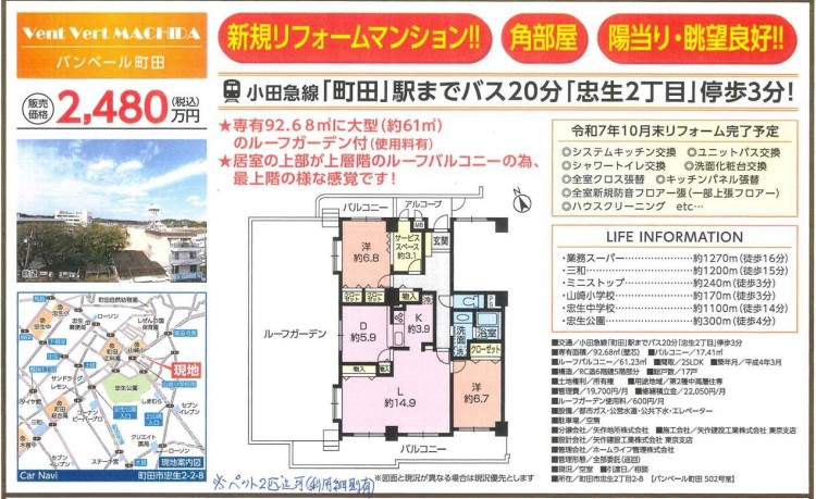- 2025.02.14 小田急線「新百合ヶ丘」駅徒歩圏。110㎡、室内フルリノベーションマンションの販売を開始しました。